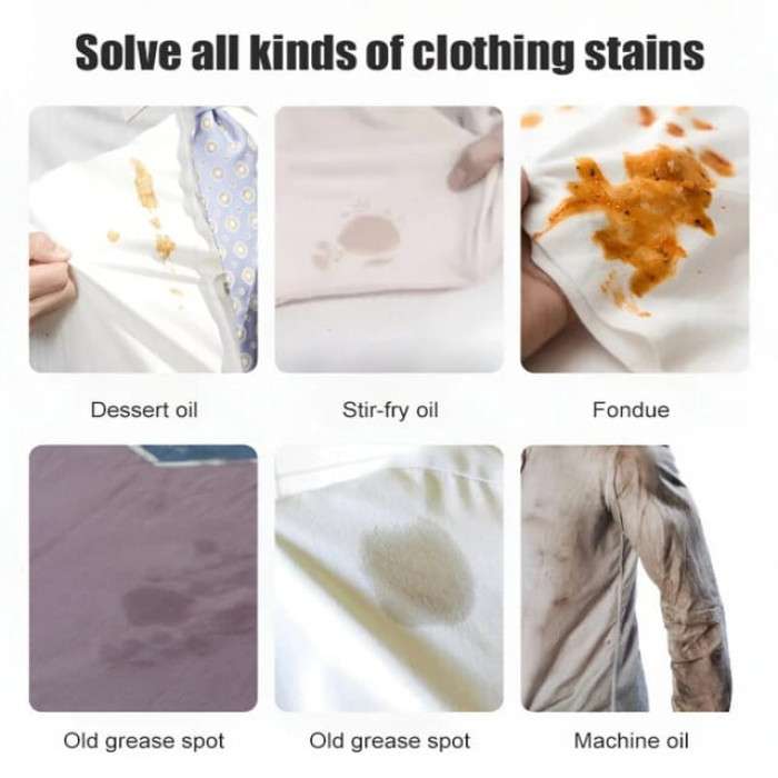 যে কোন ধরনের দাগ যেমন - তেল ,গ্রিজ ,মবিল ,স্টিল জং ,রং, রক্ত , খাবারের দাগ ইত্যাদি সব ধরনের দাগ উঠানো যায় কাপড়ে কোন ক্ষতি হয় না । খুব সহজে কম সমায়ে দাগ উঠানো যায় । রিলেটেড প্রোডাক্ট .২৫০ মিলি